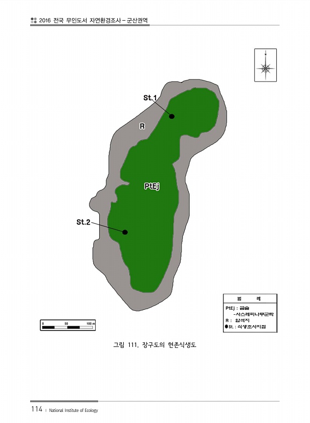 2016 전국 무인도서 자연환경조사 군산권역 114 ? National Institute of Ecology 그림 111. 장구도의현존식생도