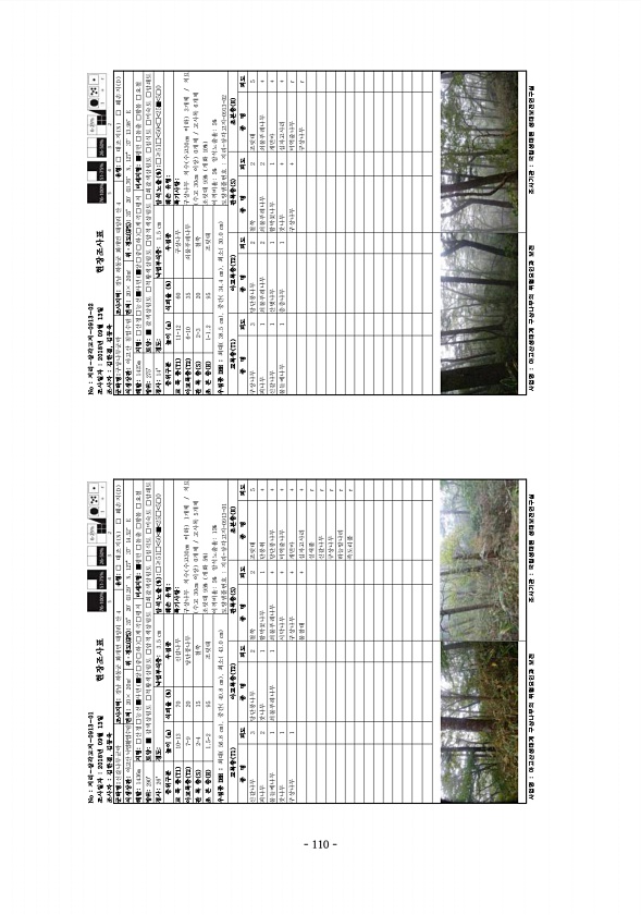 No 지리-삼각고지-0913-01 조사일자 2018년 09월 13일 조사자 김한결, 김?? 현장조사표 군락명신갈나무군락 조사지역경남 하동군 화개면 대성리 산 4 유형□ 대조지 N □ 훼손지 D 식생상관아고산 낙엽활엽수림면적20× 20㎡ 위·경도 GPS 35° 20′ 03.29″ N, 127° 37′ 14.52″ E 해발1436m 지형□산정□능선■사면 ■상□중□하 □계곡□평지 미세지형■평면 □돌출 □함몰 □요철 방위290° 토양■ 갈색삼림토 □적황색삼림토 □암적색삼림토 □회갈색삼림토 □침식토 □미숙토 □암쇄토 경사26° 경도낙엽부식층3.5 cm 암석노출 % □≥51□ 50 ■ 25□ 5□0 층위구분 높이 m 식피율 % 우점종 훼손 유형교 목 층 T1 10-13 70 신갈나무 특기사항구상나무 치수 수고30cm ...