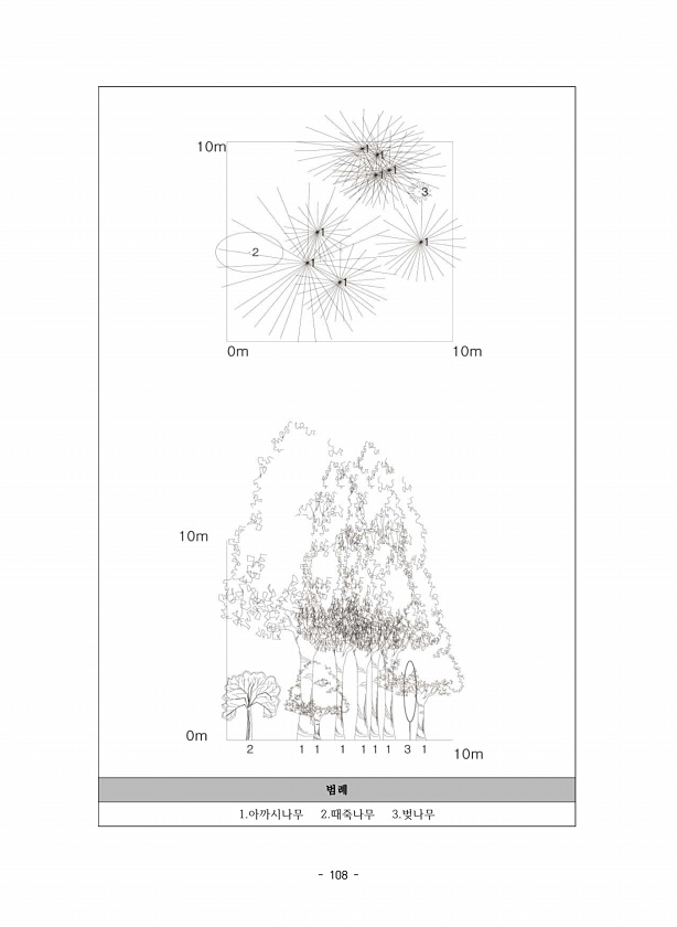 108 범례 1.아까시나무 2.때죽나무3.벚나무