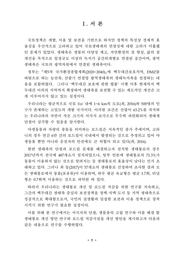 제목 : (2019) 단절된 생태계의 연결성 향상을 위한 생태학적 응용연구