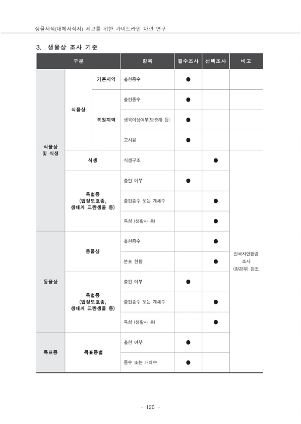 제목 : 생물서식(대체서식지) 제고를 위한 가이드라인 마련 연구