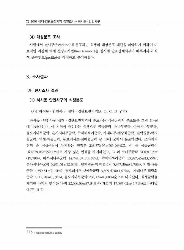 제목 : (2016) 생태·경관보전지역 정밀조사 : 하시동·안인사구
