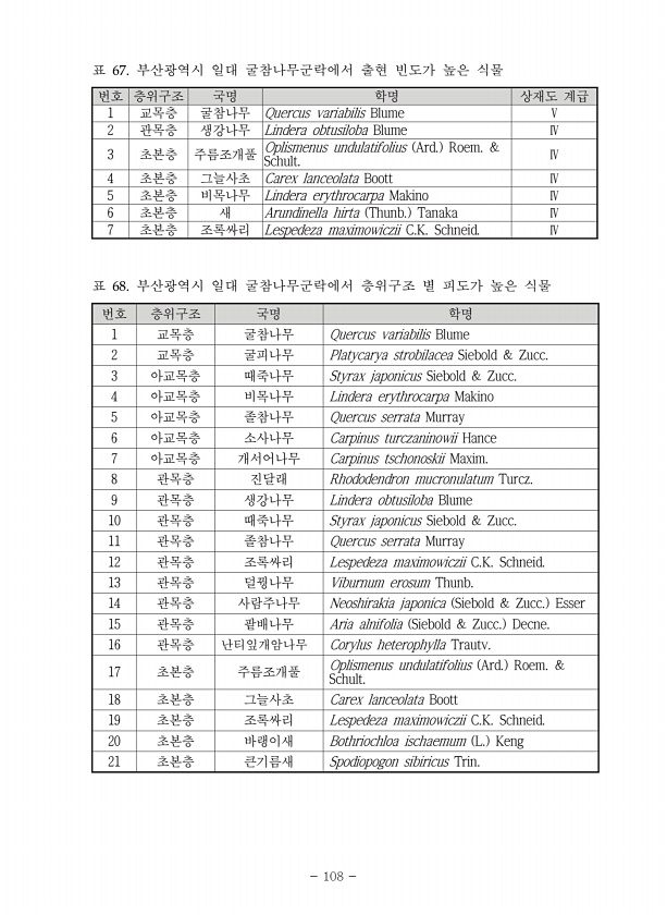 2016 생태·경관보전지역 정밀조사 하시동 · 안인사구 116 ? National Institute of Ecology 4 대상분포 조사 사빈에서 전사구 foredune 에 분포하는 식생의 대상분포 패턴을 파악하기 위하여 대 표적인 지점에 대해 선상조사법 line transect 을 실시해 만조선에서부터 배후지까지 식 생 종단면도 profile 를 작성하고 분석하였다. 3. 조사결과 가. 현지조사 결과 1 하시동·안인사구의 식생분포 가 하시동·안인사구 생태·경관보전지역 A, B, C, D 구역 하시동·안인사구 생태·경관보전지역에 분포하는 식물군락의 분포도를 그림 Ⅱ-48 에 나타내었다. 이 지역에 출현하는 식생으로 곰솔군락, 소나무군락, 아까시나무군락, 물오리나무군락, 은사시나무군락, 족제비싸리군락, 가래나...