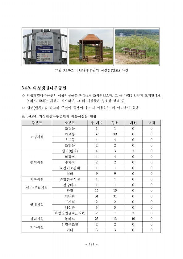 115 19 경상북도 상주시 화북면 중벌리 산39-6 해 당 생 태 통 로 준공연도 2005 겸용/전용 전용 근거 국립공원 위치 주소 경상북도 상주시 화북면 중벌리 산39-6 도로명 도로번호 지방도 997호선 관리기관 경상북도 도로 차선 수 왕복 2차선 좌표 WGS 84 위도N 36 35 09.04 경도E 127 52 56.87 조성 기법 신규조성 ■, 수로박스 등 생태통로가 아닌 기존 구조물 개선 □, 펜스만 설치 □, 기타설치 배경 환경영향평가 ■, 한반도생태축복원사업 □, 지자체 자체 계획 □, 생태보전반환협력금 □ 유형 및 규격 육교형 ■ 터널형 □, 양서?파충류 통로 □ 길이8m, 너비 13m 입구면적㎡ 너비 m, 높이 m , 길이m 개방도 입구면적/길이 지침준수여부 통로 규격 육 교 형 조사내용 ...
