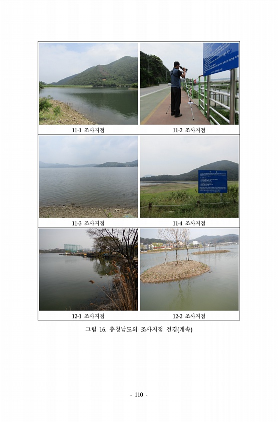 110 11-1 조사지점 11-2 조사지점 11-3 조사지점 11-4 조사지점 12-1 조사지점 12-2 조사지점 그림 16. 충청남도의 조사지점 전경 계속