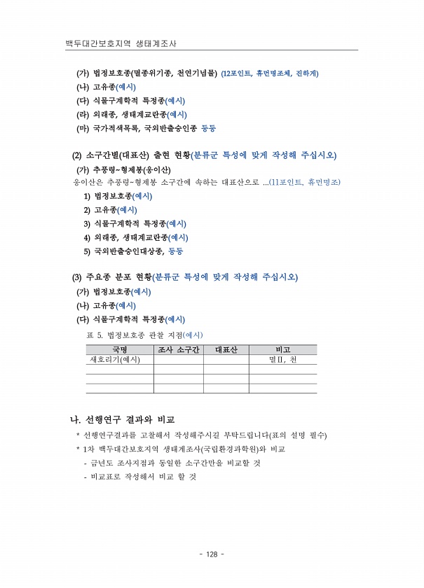 제목 : 백두대간보호지역 생태계 조사 지침서