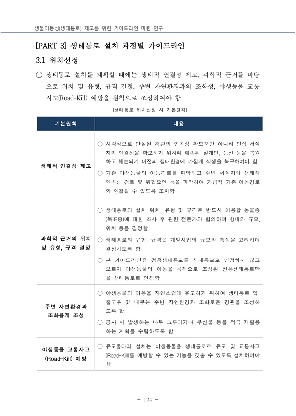 제목 : 생물이동(생태통로) 제고를 위한 가이드라인 마련 연구