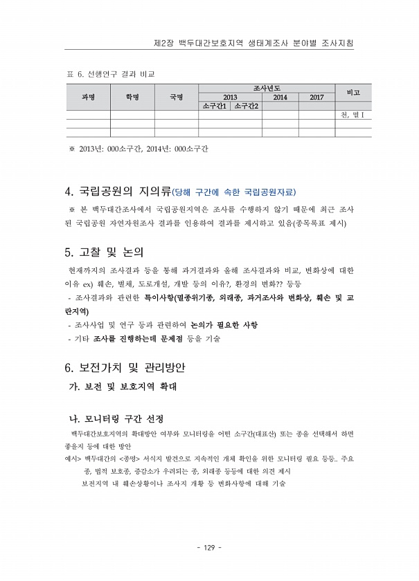 제목 : 백두대간보호지역 생태계 조사 지침서