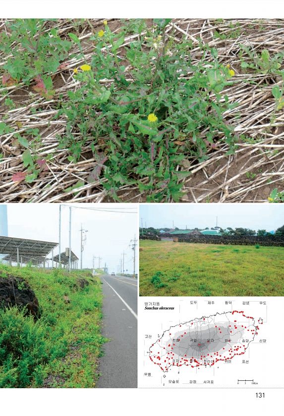 131 표선 모슬포 강정 서귀포 무릉 저지 회수 한라산 위미 고산 한림 귀일 오라 와산 신양 도두 제주 함덕 김녕 우도 송당 Sonchus oleraceus 방가지똥 0 105Km