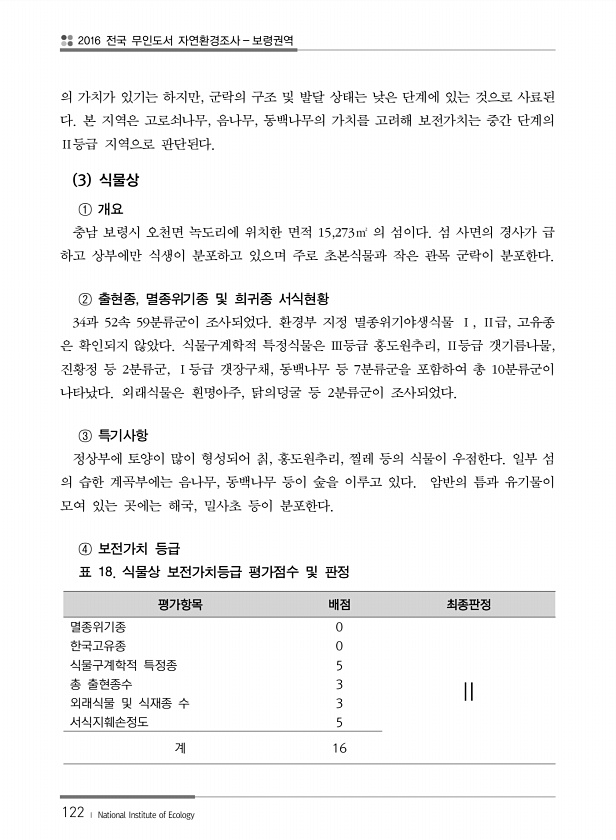 제목 : (2016) 전국 무인도서 자연환경조사 : 보령권역