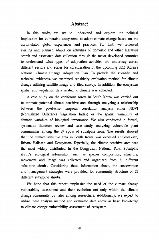 제목 : 생태안전 위협요소 평가 및 적응방안 연구.