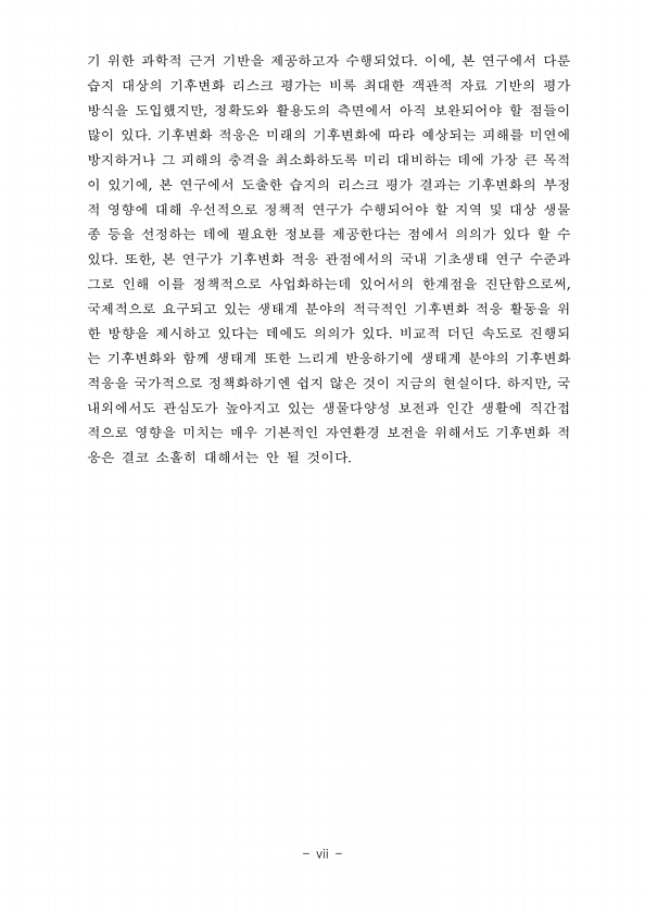 제목 : (2018) 생태계 기후변화 리스크 평가 및 적응대책 연구