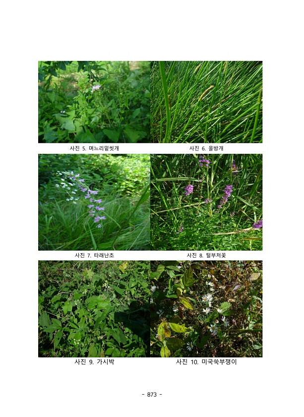 873 사진 5. 며느리밑씻개 사진 6. 올방개 사진 7. 타래난초 사진 8. 털부처꽃 사진 9. 가시박 사진 10.미국쑥부쟁이