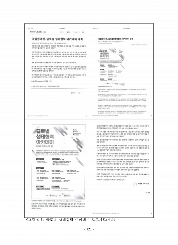 127 그림 4-7 글로벌 생태협력 아카데미 보도자료 계속