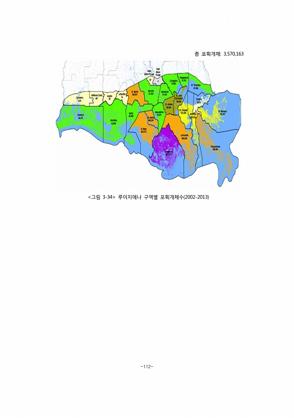-112- 총 포획개체3,570,163 그림 3-34 루이지애나 구역별 포획개체수 2002-2013
