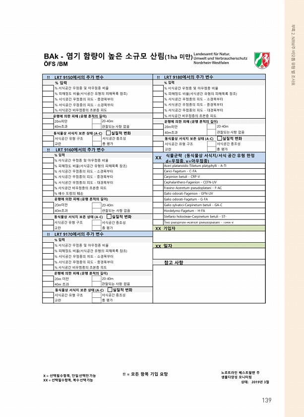 부록 2. NRW주 비오톱 유형 별 조사표139