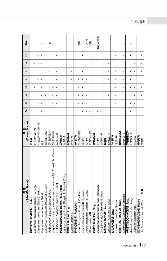 www ·nie·re·kr ? 129 학 명 Scientific Name 국 명 Korean Name A B C D E F G H 비고 DRYOPTERIDACEAE Herter 관중과 Dryopteris bissetiana Baker C. Chr. 산족제비고사리 * * Dryopteris chinensis Baker Koidz. 가는잎족제비고사리 * * * * Dryopteris crassirhizoma Nakai 관중 * * * * * * * Ⅰ Dryopteris monticola Makino C. Chr. 왕지네고사리 * Polystichum braunii Spenn, F?e 좀나도히초미 * * Ⅱ Polystichum ovato-paeaceum var. coraiense H. Christ Sa. Ku...