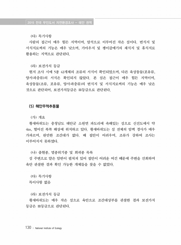 제목 : (2015) 전국 무인도서 자연환경조사 : 태안 권역