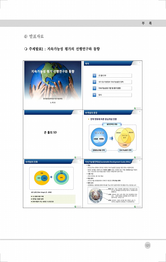 부 록 121 4 발표자료 m 주제발표1 지속가능성 평가의 선행연구와동향