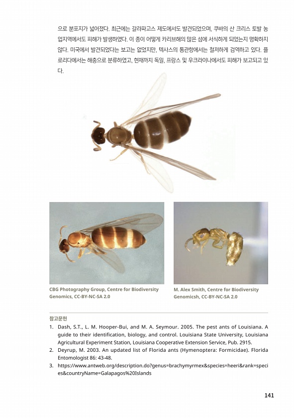 141 으로 분포지가 넓어졌다. 최근에는 갈라파고스 제도에서도 발견되었으며, 쿠바의 산 크리스 토발 농 업지역에서도 피해가 발생하였다. 이 종이 어떻게 카리브해의 많은 섬에 서식하게 되었는지 명확하지 않다. 미국에서 발견되었다는 보고는 없었지만, 텍사스의 통관항에서는 철저하게 검역하고 있다. 플 로리다에서는 해충으로 분류하였고, 현재까지 독일, 프랑스 및 우크라이나에서도 피해가 보고되고 있 다. 참고문헌 1. Dash, S.T., L. M. Hooper-Bui, and M. A. Seymour. 2005. The pest ants of Louisiana. A guide to their identification, biology, and control. Louisiana State University, Lou...