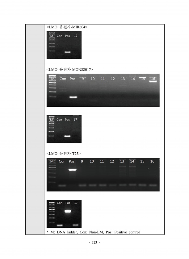 123 LMO 유전자-MIR604 LMO 유전자-MON88017 LMO 유전자-T25 * MDNA ladder, ConNon-LM, PosPositivecontrol