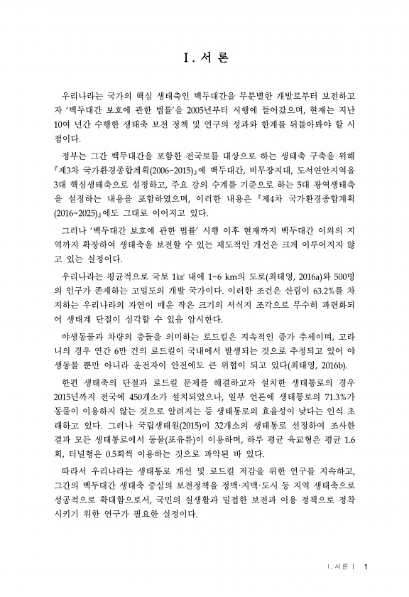 제목 : (2017) 광역생태축의 보전 및 복원을 위한 기반 연구