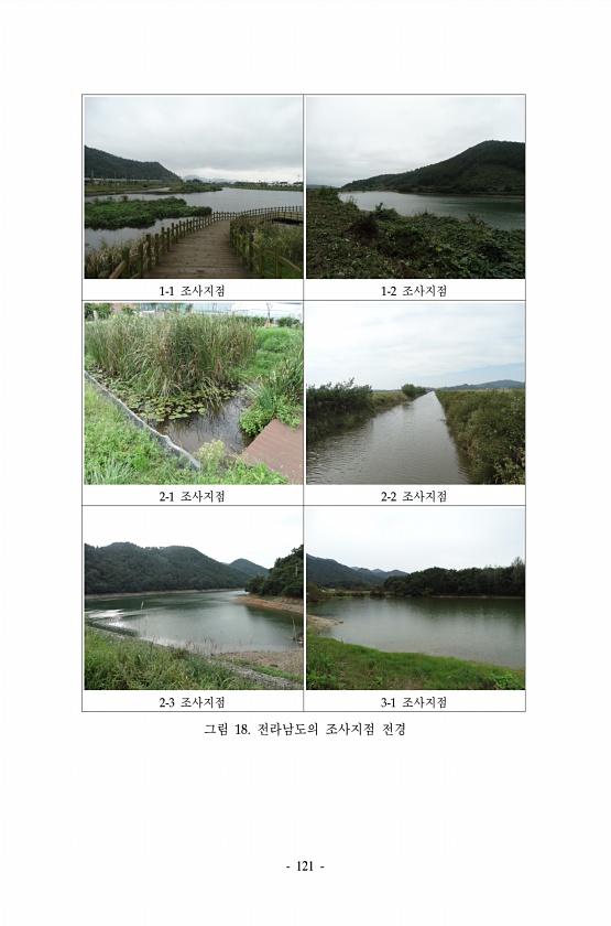 121 1-1 조사지점 1-2 조사지점 2-1 조사지점 2-2 조사지점 2-3 조사지점 3-1 조사지점 그림 18. 전라남도의 조사지점전경