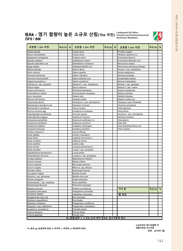 부록 2. NRW주 비오톱 유형 별 조사표141