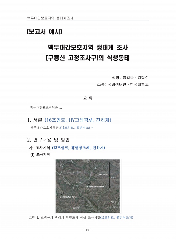 제목 : (2018) 백두대간보호지역 생태계 조사.삽당령~신배령