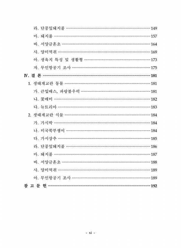 xi 라. 단풍잎돼지풀 ···················································································149 마. 돼지풀 ·······························································································157 바. 서양금혼초 ·······················································································164 사. 양미역취 ······················································································...