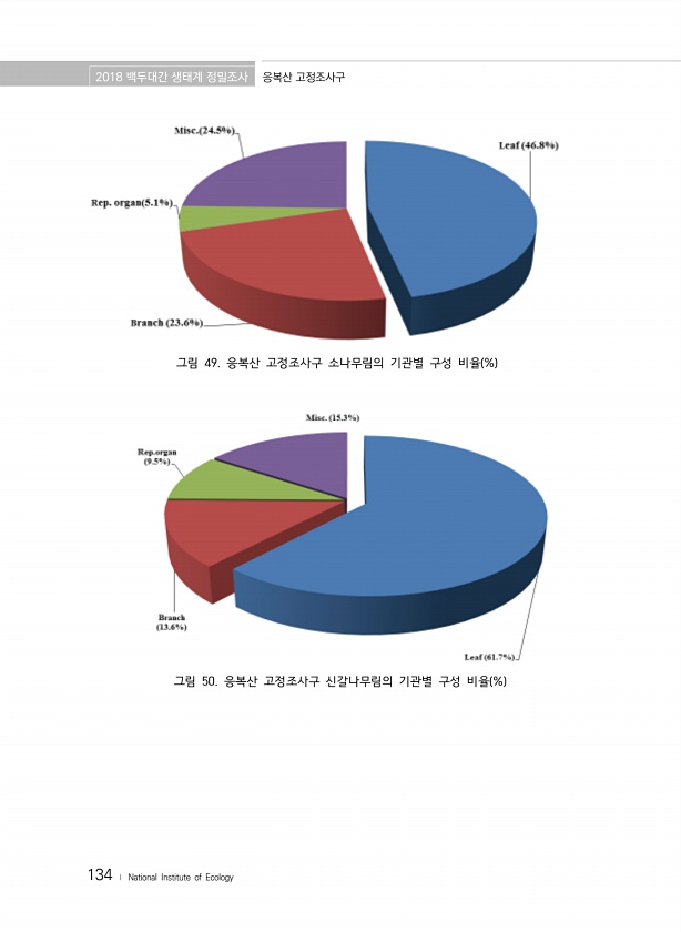 2018 백두대간 생태계 정밀조사 응복산 고정조사구 134 ? National Institute of Ecology 그림 49. 응복산 고정조사구 소나무림의 기관별 구성 비율 % 그림 50. 응복산 고정조사구 신갈나무림의 기관별 구성 비율 %