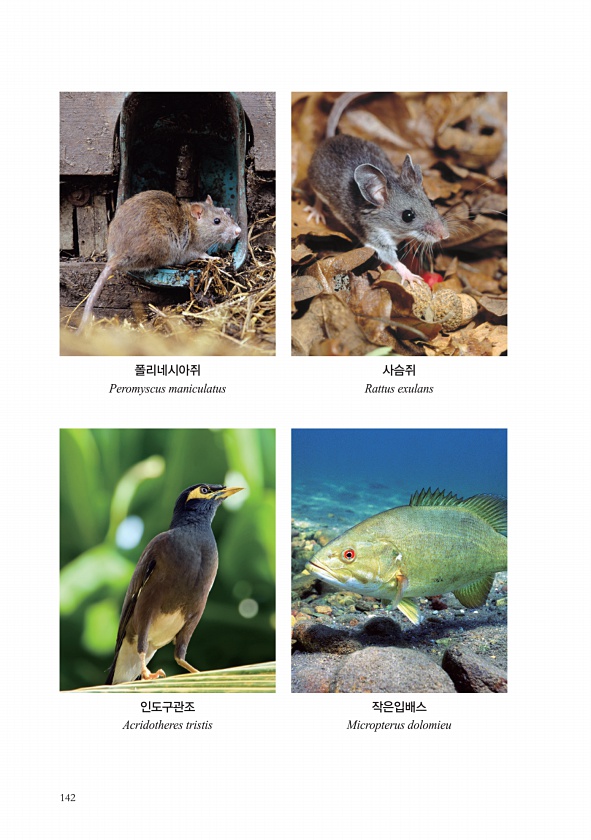 142 폴리네시아쥐 Peromyscus maniculatus 인도구관조 Acridotheres tristis 사슴쥐 Rattus exulans 작은입배스 Micropterusdolomieu