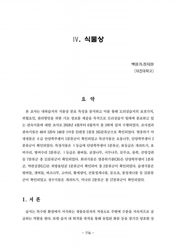 제목 : (제4차) 전국내륙습지 정밀조사(’19)