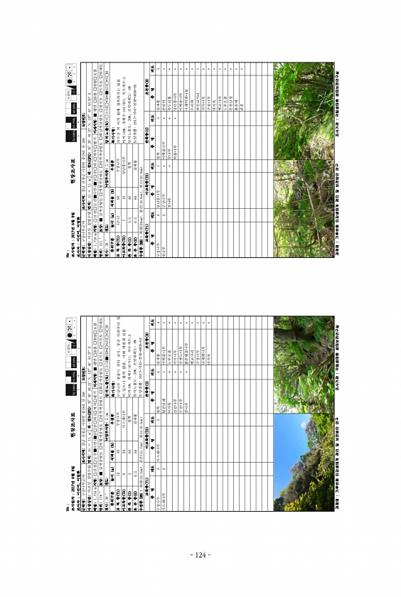 No 조사일자 2017년 6월 8일 조사자 이선미, 이일환 현장조사표 군락명구상나무군락 조사지역경남 산청군 사천면 중산리 산 208 도엽번호식생상관아고산 침엽수림 면적15 × 15 ㎡ 위·경도 GPS 35°20′ 02.21″ N, 127°43′ 53.27″ E 해발1,734 m 지형□산정□능선■사면 ■상□중□하 □계곡□평지 미세지형■ 평면 □돌출 □함몰□요철 방위178 ° 토양■ 갈색삼림토 □적황색삼림토 □암적색삼림토 □회갈색삼림토 □침식토 □미숙토 □암쇄토 경사36 ° 경도낙엽부식층2 cm 암석노출 % □≥51■ 50 □ 25□ 5□0 층위구분 높이 m 식피율 % 우점종 특기사항구상나무 윗줄기 부터 고사, 중간 이하부터 잎 이 있으나 활력 없음, 가해 애벌레 있음 이끼0%, 개체수8 사1 , 치수개수2 암...