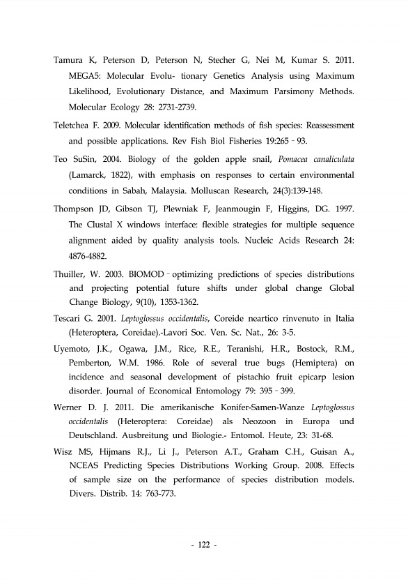 122 Tamura K, Peterson D, Peterson N, Stecher G, Nei M, Kumar S. 2011. MEGA5Molecular Evolu- tionary Genetics Analysis using Maximum Likelihood, Evolutionary Distance, and Maximum Parsimony Methods. Molecular Ecology 282731-2739. Teletchea F. 2009. Molecular identification methods of fish speciesReassessment and possible applications. Rev Fish Biol Fisheries 19265?93. Teo SuSin, 2004. Biology of t...
