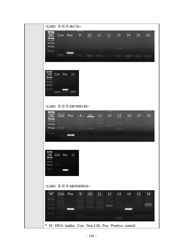 124 LMO 유전자-Bt176 LMO 유전자-DP-098140 LMO 유전자-MON89034 * MDNA ladder, ConNon-LM, PosPositivecontrol