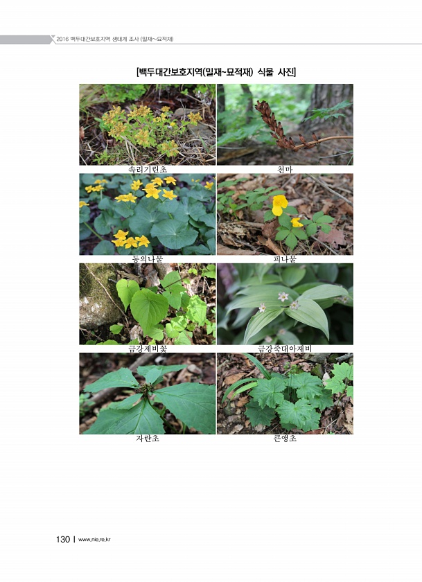 2016 백두대간보호지역 생태계 조사 밀재묘적재 130Ⅰwww.nie.re.kr [백두대간보호지역 밀재묘적재 식물 사진] 속리기린초 천마 동의나물 피나물 금강제비꽃 금강죽대아재비 자란초큰앵초