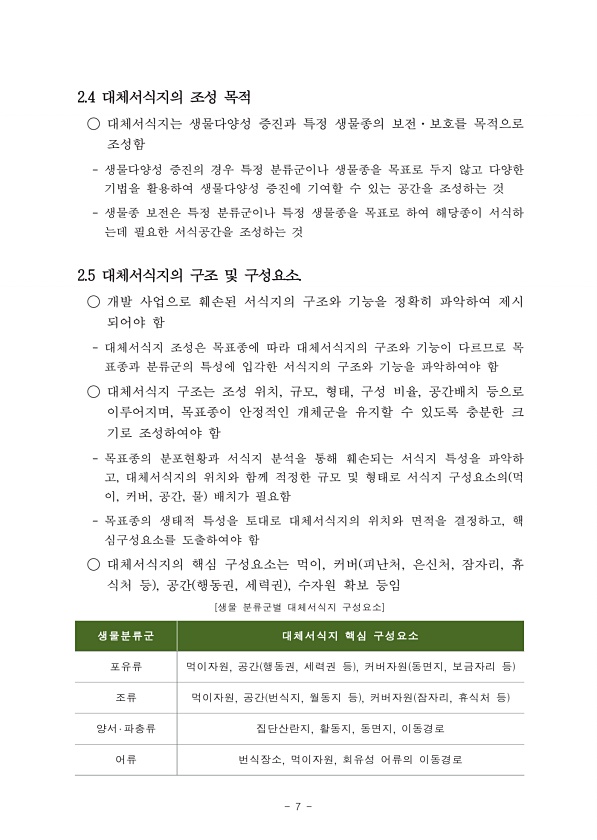 제목 : 생물서식(대체서식지) 제고를 위한 가이드라인 마련 연구