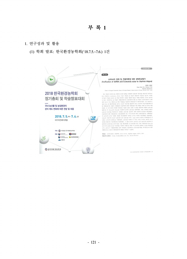 121 부 록 1 1. 연구성과 및 활용 1 학회 발표한국환경농학회 ‘18.7.5.7.6.1건