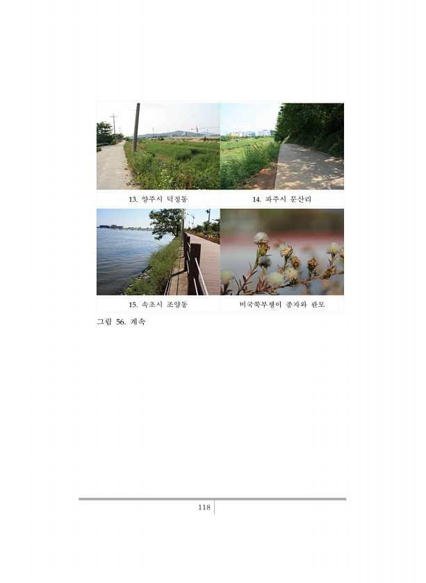 118 13. 양주시 덕정동 14. 파주시 문산리 15. 속초시 조양동 미국쑥부쟁이 종자와 관모 그림 56.계속