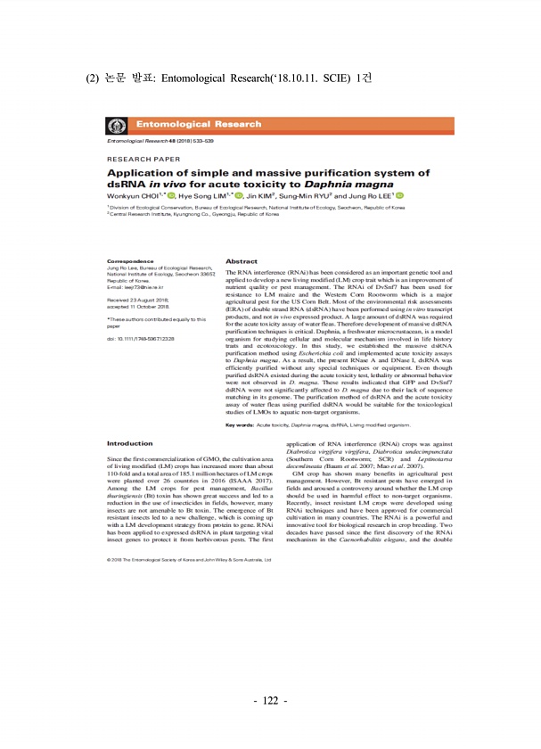 122 2 논문 발표Entomological Research ‘18.10.11. SCIE1건