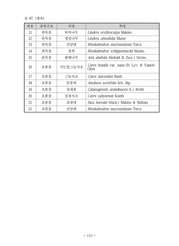 제목 : 생태계 장기모니터링 지역의 기후변화 영향