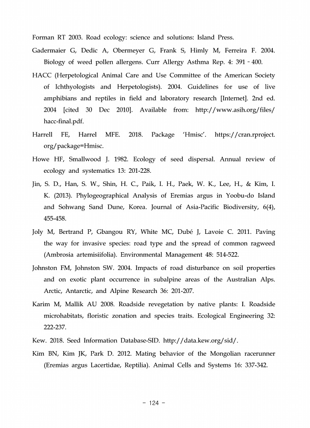 제목 : (2019) 선형사업대상 생태분야 환경영향평가 방법 연구. Ⅲ