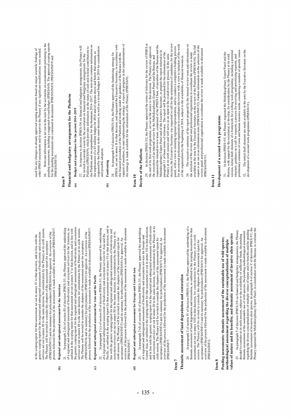 in the scoping report for that assessment set out in annex IV to that decision, and in line with the generic scoping report for the regional and subregional assessments of biodiversity and ecosystem services set out in annex III to the same decision, for consideration by the Plenary at its sixth session. The Plenary will be invited to consider the chapters of the assessment report for acceptance I...