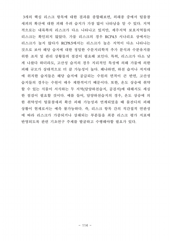 제목 : (2018) 생태계 기후변화 리스크 평가 및 적응대책 연구