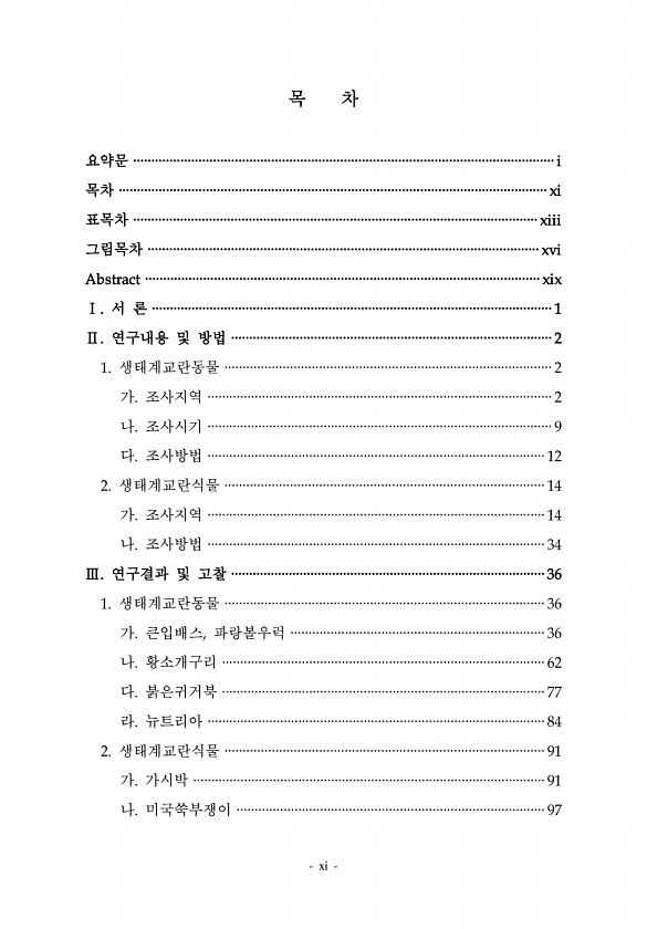 xi 목 차 요약문 ····················································································································i 목차 ······················································································································ xi 표목차 ················································································································xiii 그림목차 ····················...