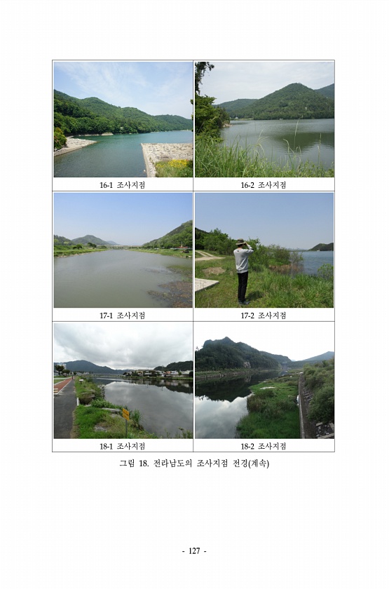 127 16-1 조사지점 16-2 조사지점 17-1 조사지점 17-2 조사지점 18-1 조사지점 18-2 조사지점 그림 18. 전라남도의 조사지점 전경 계속