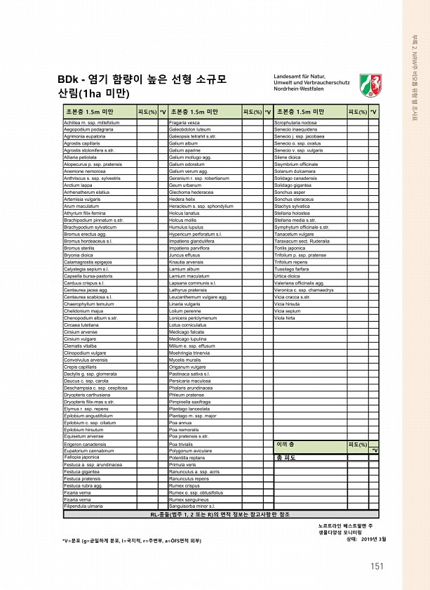 부록 2. NRW주 비오톱 유형 별 조사표151