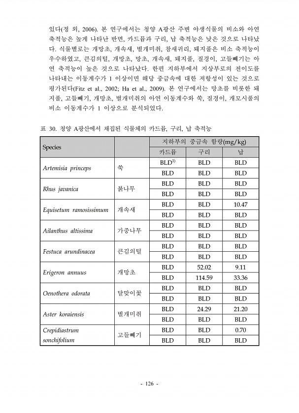 126 , 2006 A , , , , , , , , , , , , , 1 Fitz et al., 2002; Ha et al., 2009 , , , , , 1 Species mg/kg Artemisia princeps BLD1 BLD BLD BLD BLD BLD Rhus javanica BLD BLD BLD BLD BLD BLD Equisetum ramosissimum BLD BLD 10.47 BLD BLD BLD Ailanthus altissima BLD BLD BLD BLD BLD BLD Festuca arundinacea BLD BLD BLD BLD BLD BLD Erigeron annuus BLD 52.02 9.11 BLD 114.59 33.36 Oenothera odorata BLD BLD BLD B...