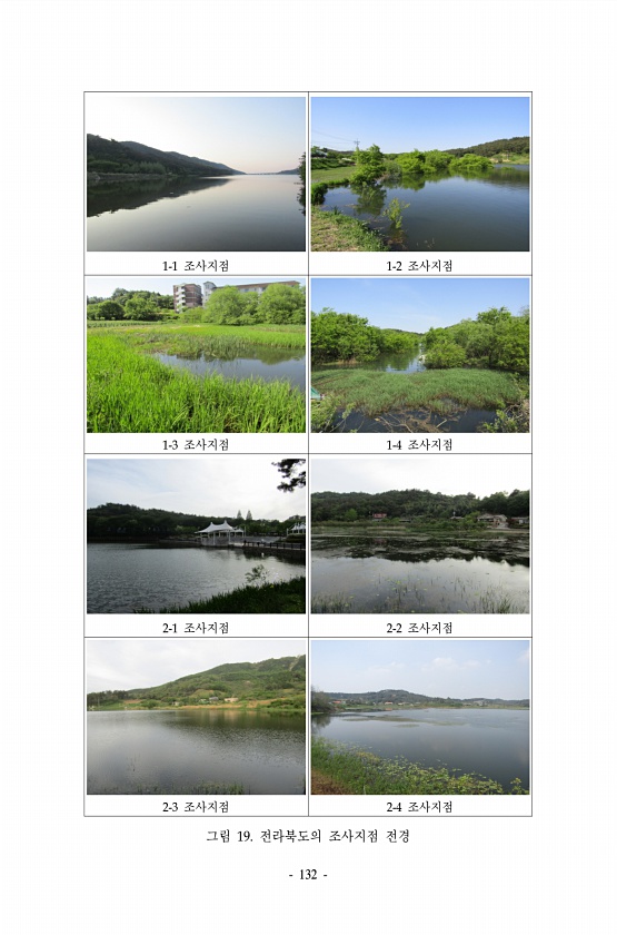 132 1-1 조사지점 1-2 조사지점 1-3 조사지점 1-4 조사지점 2-1 조사지점 2-2 조사지점 2-3 조사지점 2-4 조사지점 그림 19. 전라북도의 조사지점전경